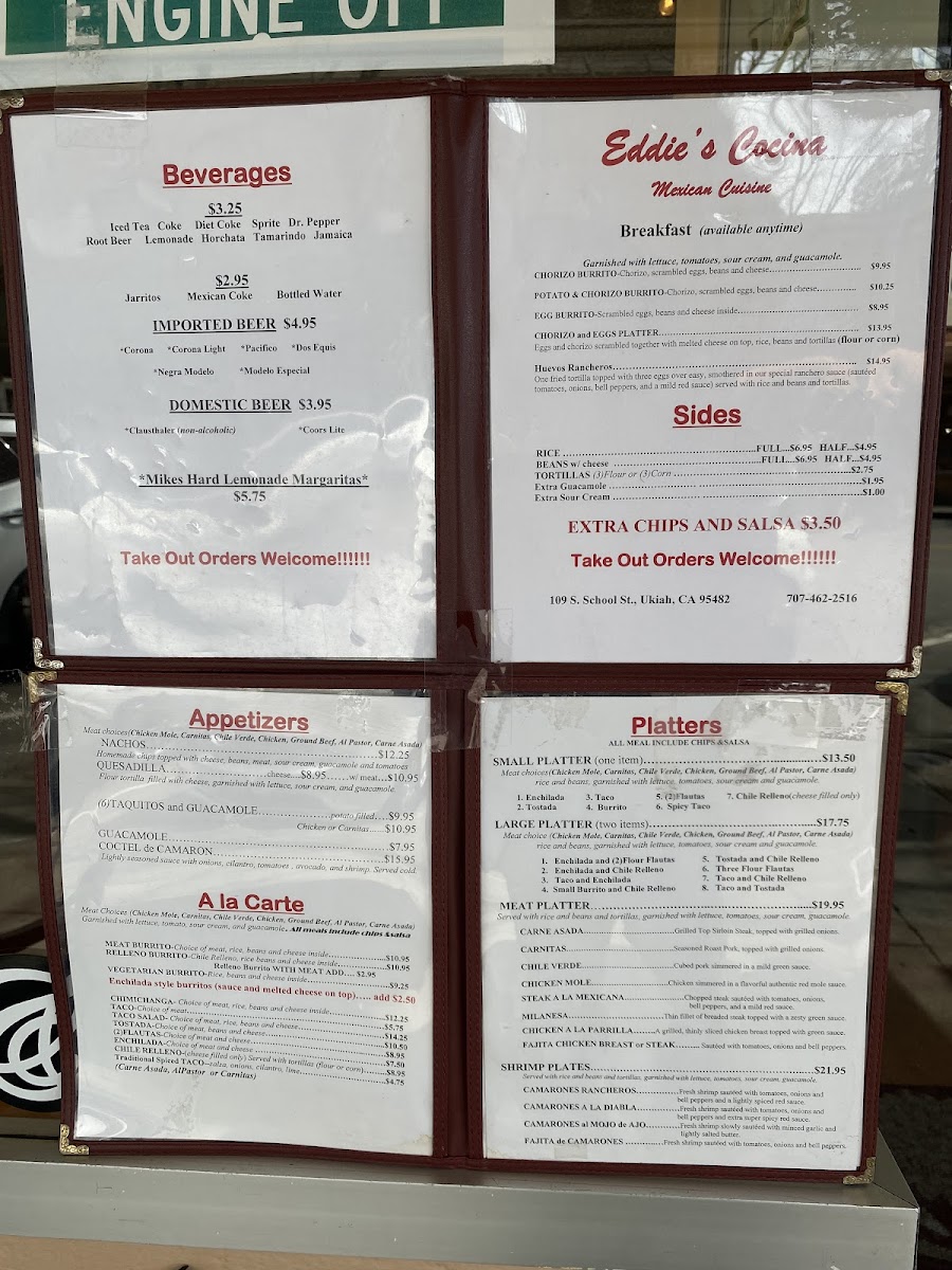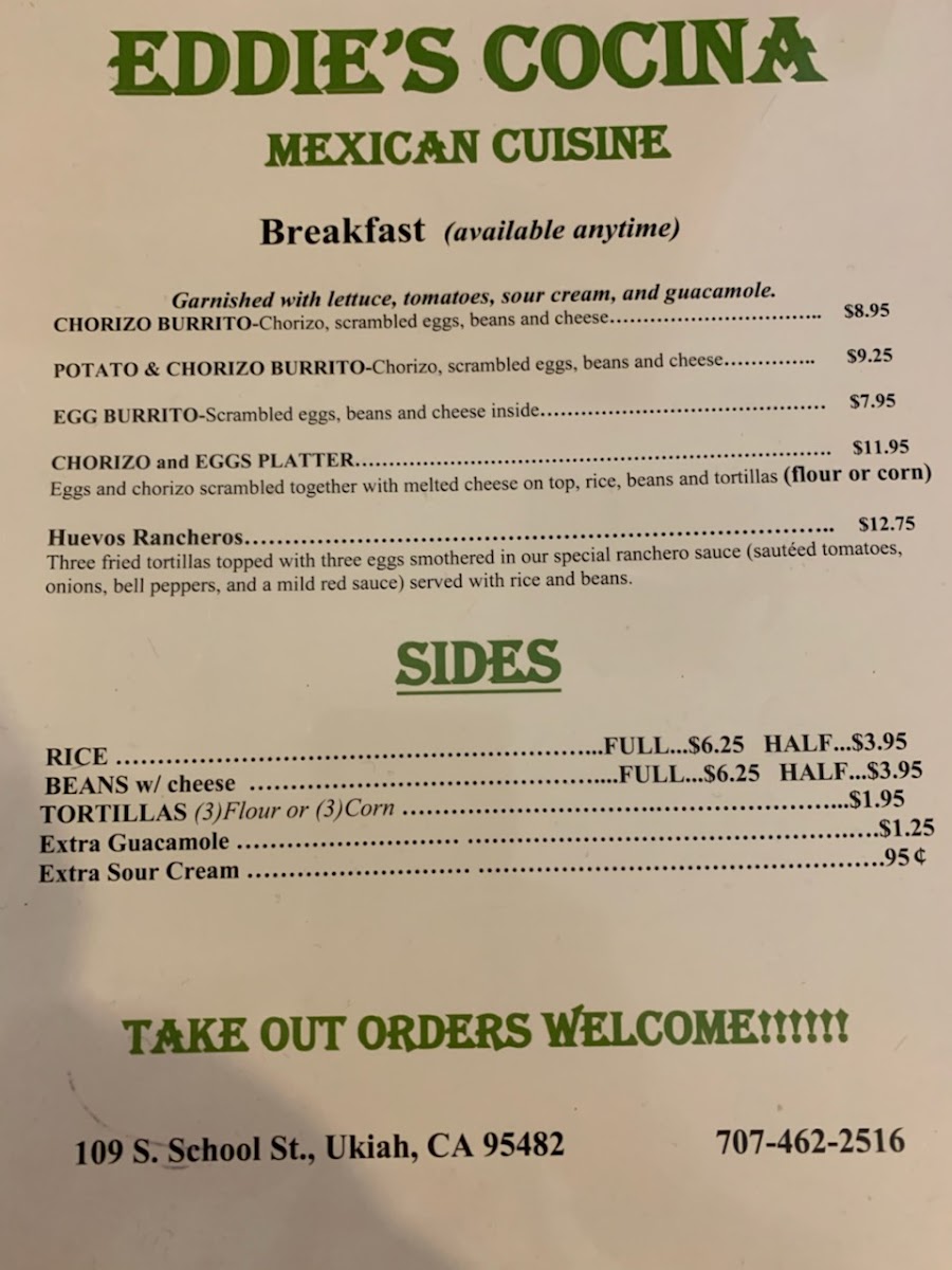 This menu suits those who appreciate generous portions and genuine homestyle Mexican cooking, all served in a welcoming, neighborhood setting. Whether you're craving a flavorful plate after a long day or a casual spot to gather and enjoy familiar tastes, Eddie's Cocina offers an approachable and satisfying menu that feels like a home away from home.